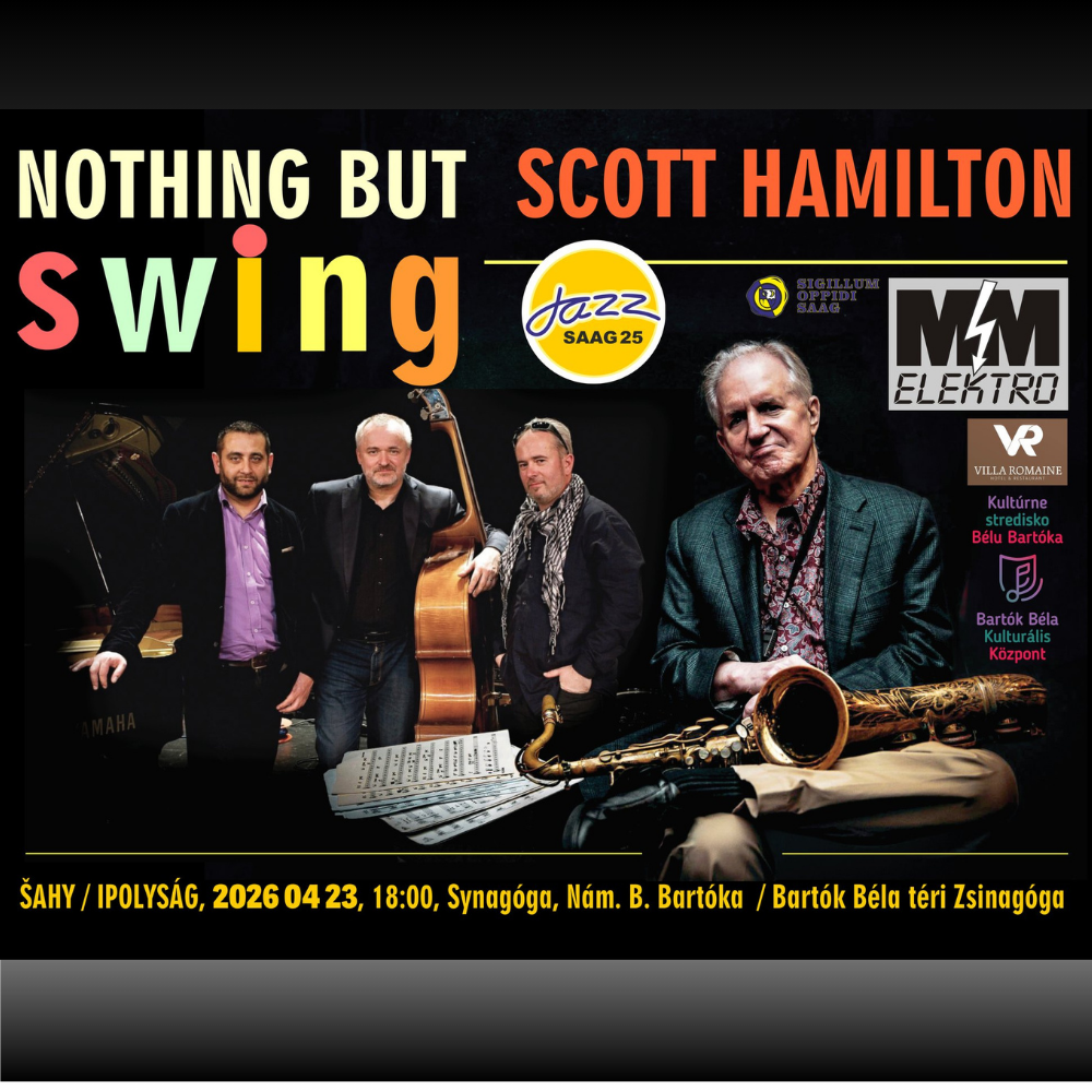 A világhírű swing tenorszaxofonos, Scott Hamilton újra a besztercebányai Nothing But Swing Trióval lép színpadra, hogy egy különleges jazzesttel varázsolja el az ipolysági közönséget.